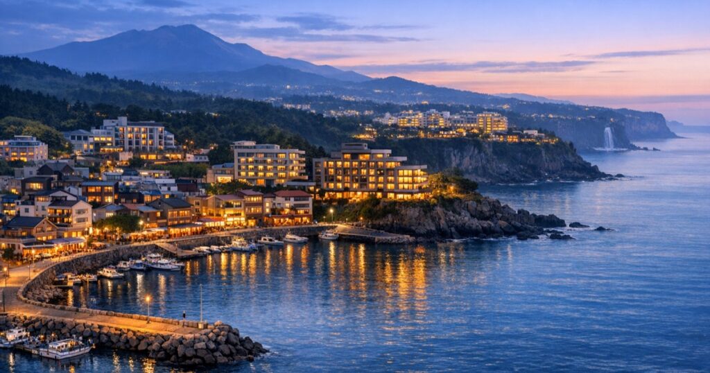 서귀포 시내(동홍동, 서홍동, 서귀동)는 올레시장과 이중섭거리, 다양한 로컬 식당이 밀집해 있어 저녁 시간의 자유도가 높습니다. 렌터카 없이 여행하거나, 밤늦게까지 현지 맛집을 즐기고 싶은 여행자에게 가장 이상적인 위치입니다. 다만, 신축 대형 리조트보다는 비즈니스 호텔이나 감성 숙소가 많다는 특징이 있습니다.